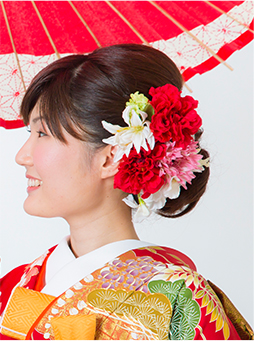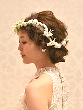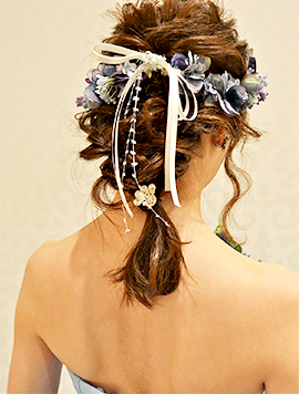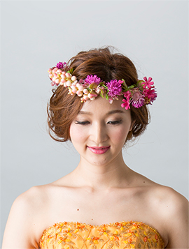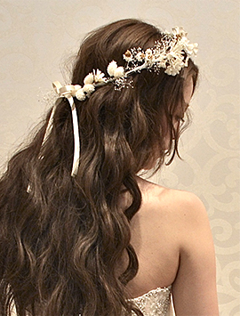 ヘアスタイルとの合わせ方でなりたい雰囲気を叶えるヘッドフラワー。